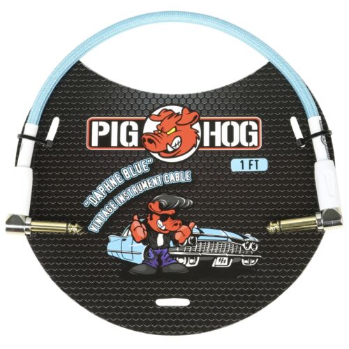 Pig Hog Vintage Woven Patch Cable, 1-Foot, 7mm, Right-Angle Connectors, Daphne Blue (PCH1DBR)