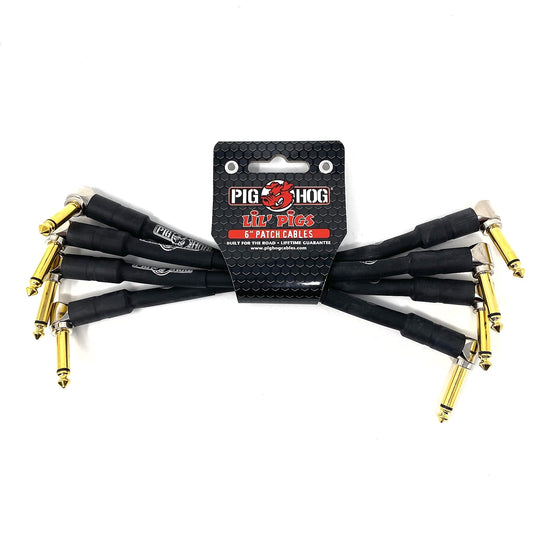 Pig Hog Lil Pigs Tour Grade 6-Inch Patch Cables, Black, 4-Pack