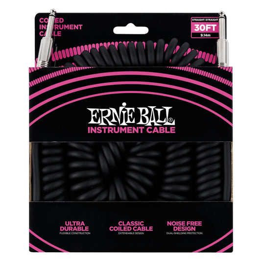 Ernie Ball 30' Coiled Straight / Straight Instrument Cable, Black