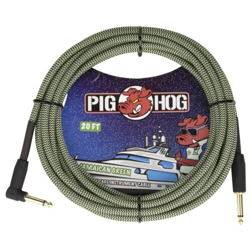 Pig Hog 20-Foot Vintage Woven Instrument Cable, 1/4" Straight-Right Angle, Jamaican Green