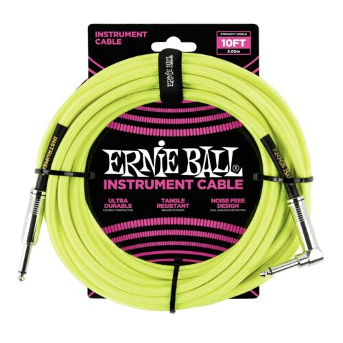 Ernie Ball 10' Braided Straight / Angle Instrument Cable, Neon Yellow