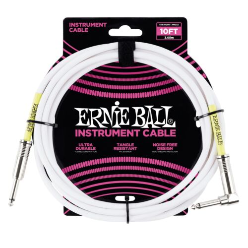 Ernie Ball 10' 1/4" Straight / Angle Instrument Cable - White (10-foot)