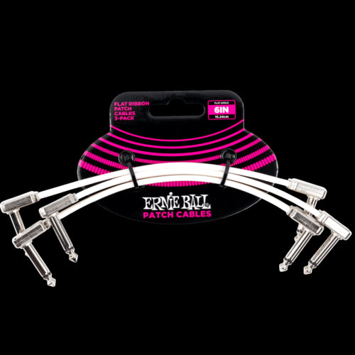Ernie Ball 6-inch Flat Ribbon Patch Cable, White (3-Pack)