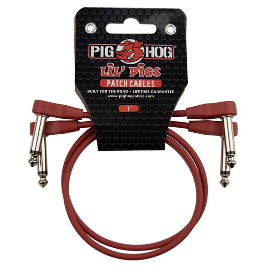 Pig Hog Lil Pigs Low Profile Flat 1-Foot Patch Cables, Candy Apple Red, 2-Pack