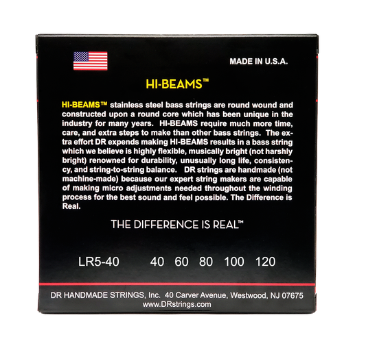 DR Strings LR5-40 Light 5's Hi-Beam Stainless Steel (Round Core) Bass Strings