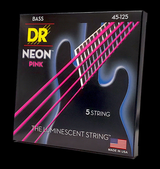 DR Strings Neon Pink Bass Strings 5-String Set (45-125), K3 Coated, NPB5-45