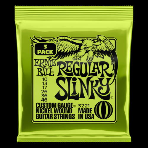 Ernie Ball Regular Slinky Nickel Wound Electric Guitar Strings 3-Pack, 10-46 Gauge (3221)
