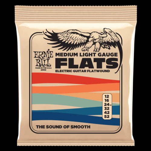 Ernie Ball Medium Light Stainless Steel Flatwound Electric Guitar Strings, 12-52 Gauge