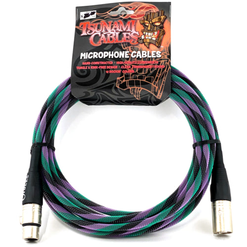 Tsunami Cables 15' Handcrafted Premium Microphone XLR Cable, "Twilight" (Black/Purple/Teal)