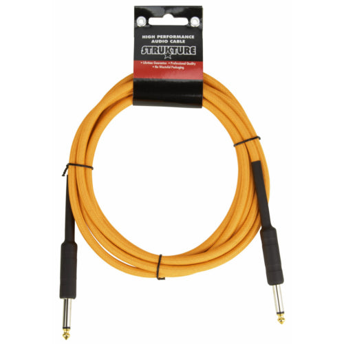 Strukture 10ft Instrument Cable, 6mm Woven, 1/4" TS Straight Plugs, Hi-Viz Neon Yellow