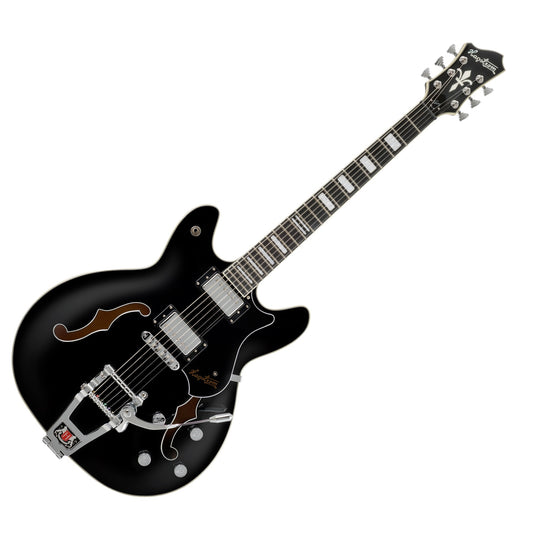 Hagstrom Tremar Viking Deluxe, Semi-hollow Electric Guitar with Tremolo, Black Gloss