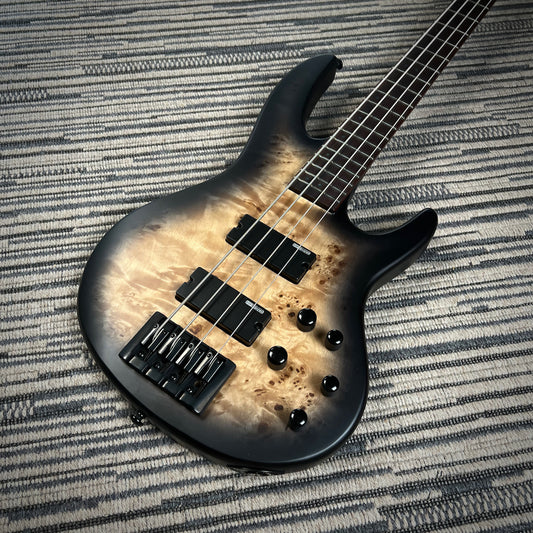 LTD (ESP) D-4 4-String Bass, Black Natural Burst Satin, Burled Poplar