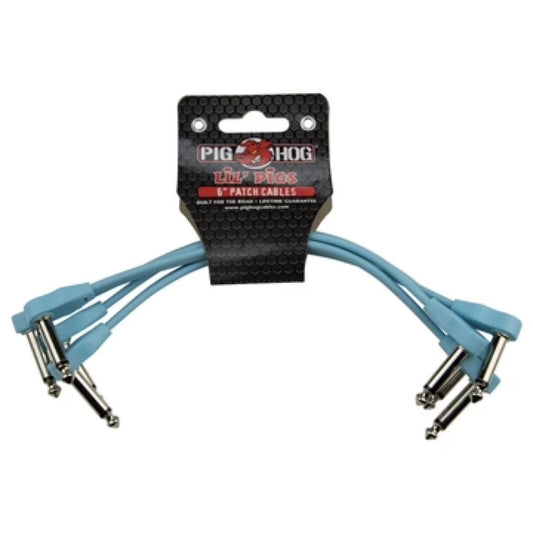 Pig Hog Lil Pigs Vintage Woven 6-Inch Patch Cables, Daphne Blue, 3-Pack
