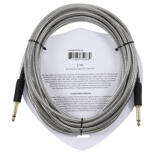 Pig Hog "Black Woven" Tour Grade Instrument Cable, 20ft Right Angle PCH20BKR