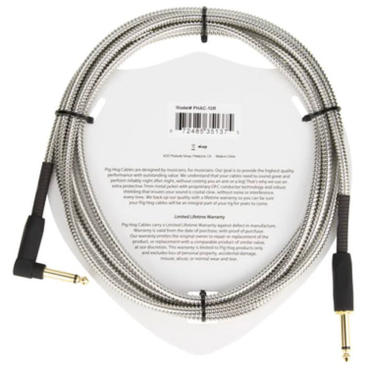 Pig Hog "Armor Clad" Instrument Cable, 10 Feet, 1/4"-1/4" Right Angle, Industrial Look (PHAC-10R)
