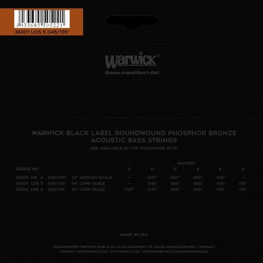 Warwick Black Label Phosphor Bronze Acoustic Bass Strings 5-String Long Scale 36301 LOS 5 045/135S