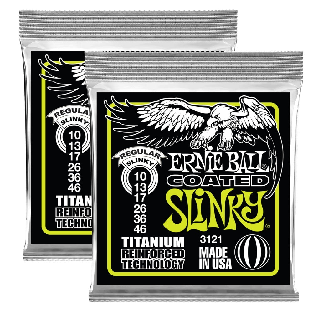 2x (2 Sets) Ernie Ball 3121 Coated Titanium Regular Slinky Electric Guitar Strings (10-46)