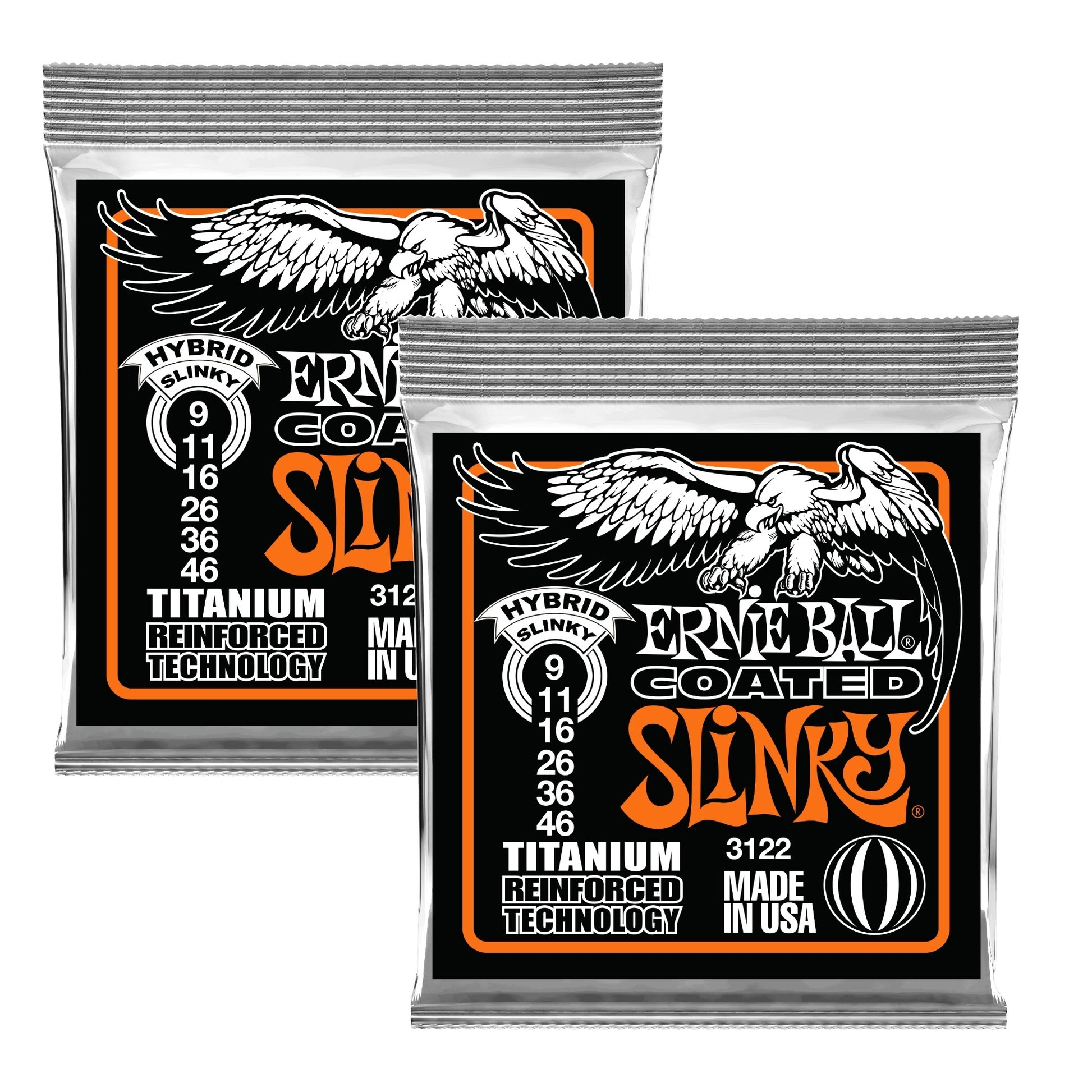 2x (2 sets) Ernie Ball 3122 Electric Hybrid Slinky Coated Titanium RPS Electric Guitar Strings, 9-46