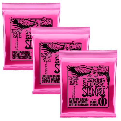 3x (3 sets) Ernie Ball 7-String Super Slinky Custom Gauge Nickel Wound Guitar Strings (9-52), 2623