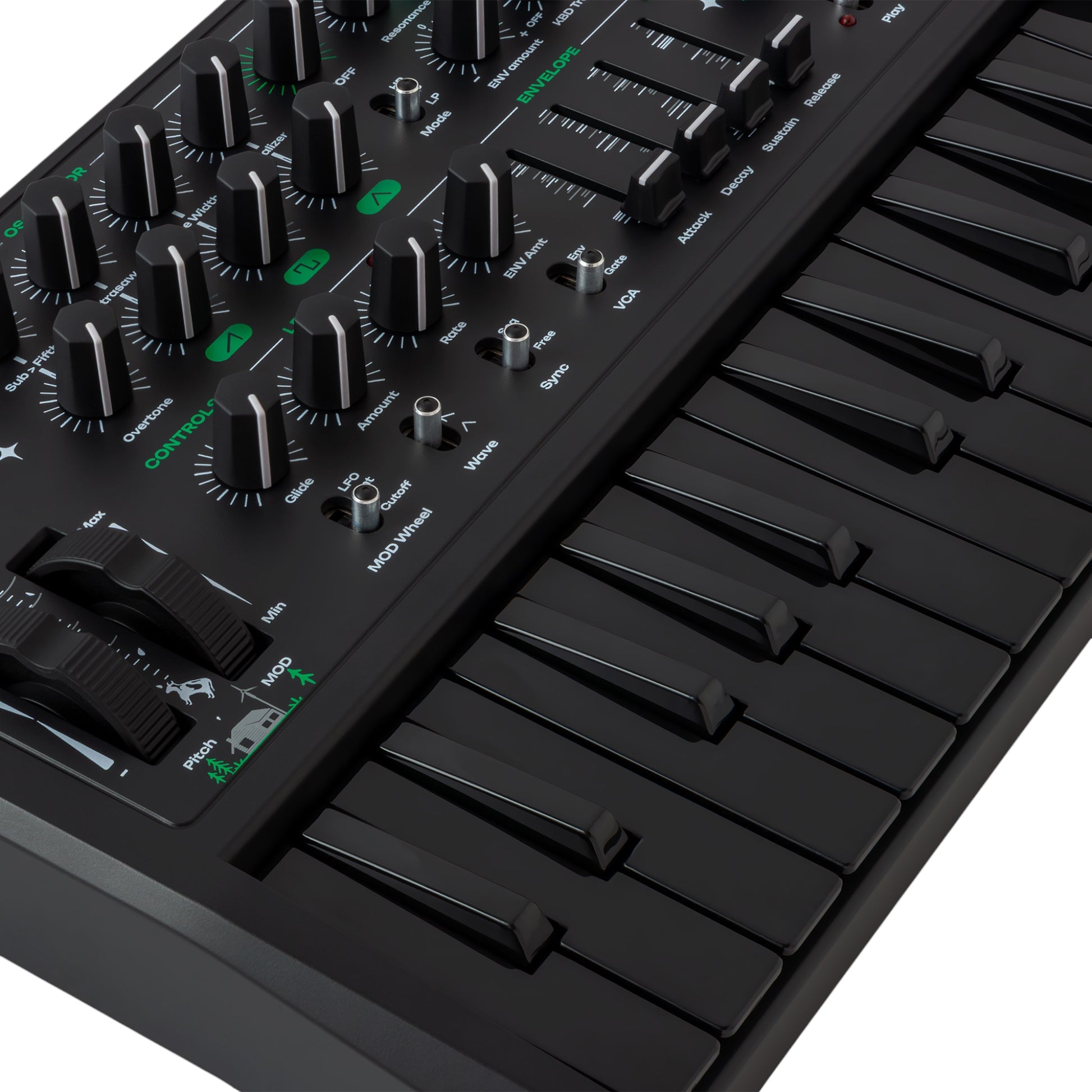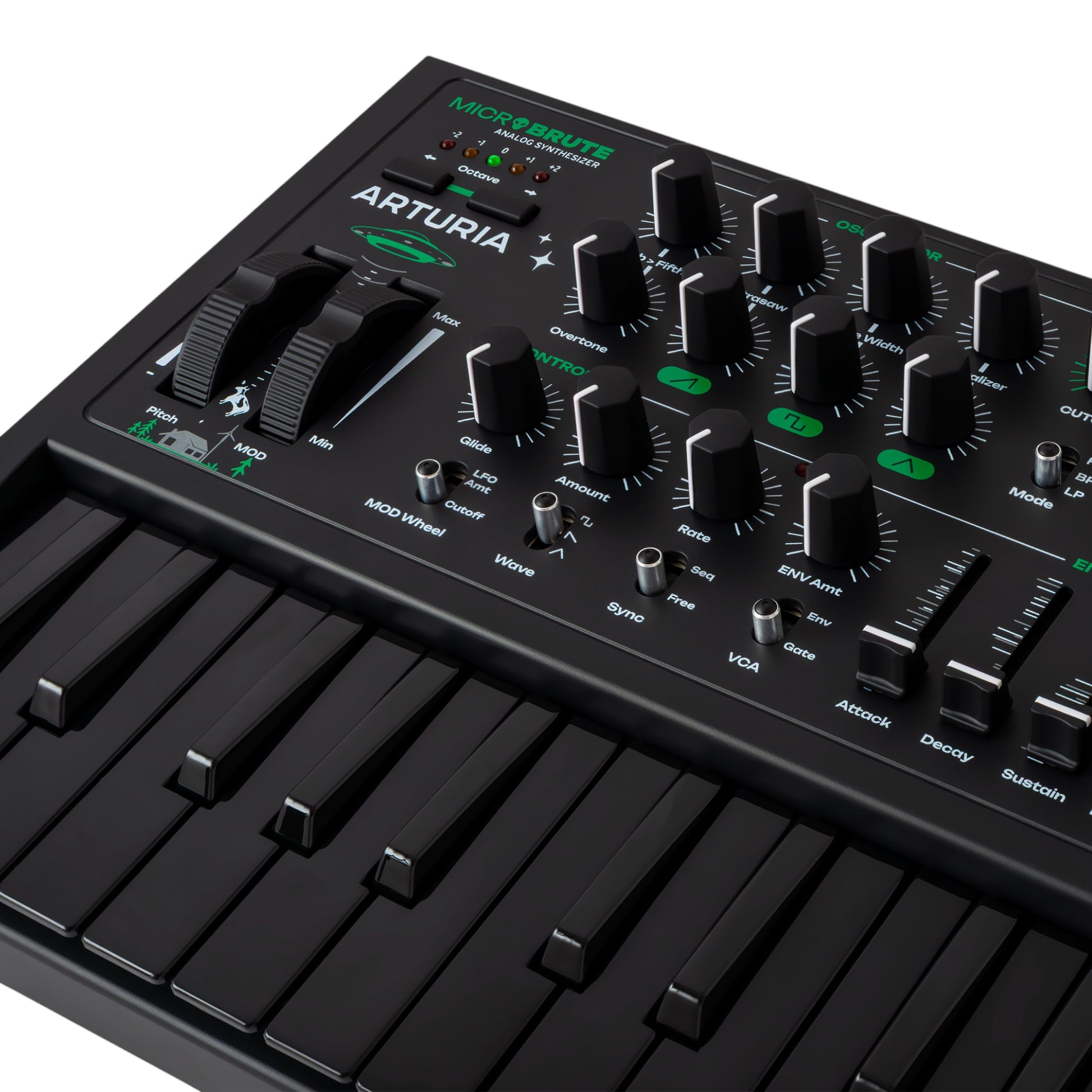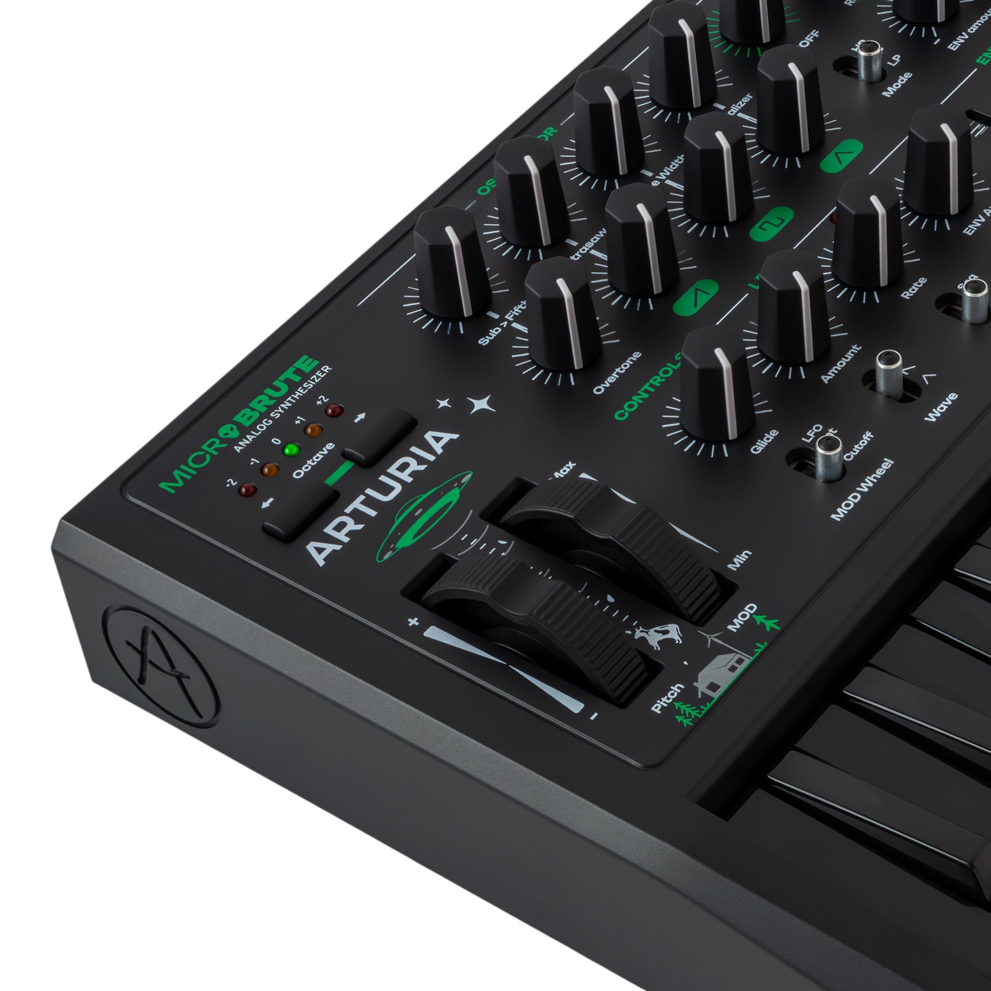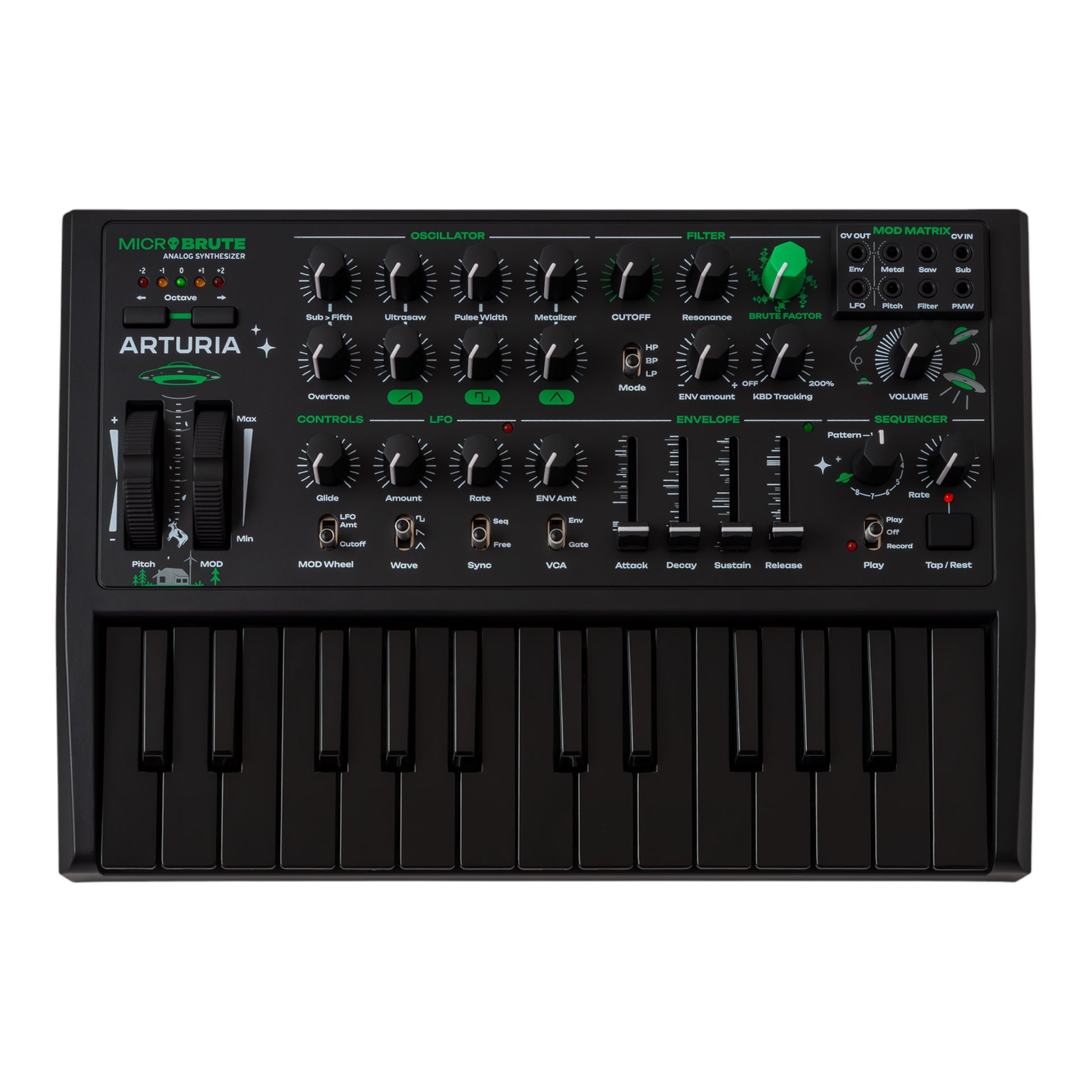 MicroBrute UFO is a tribute to the analog renaissance Arturia helped ignite. 100% analog signal path, a fat Steiner-Parker multimode filter, and the legendary Brute Factor™ drive deliver everything from searing leads to tectonic bass. As a unique edition, its matte space-black shell and martian-green accents make it as much statement piece as studio tool.