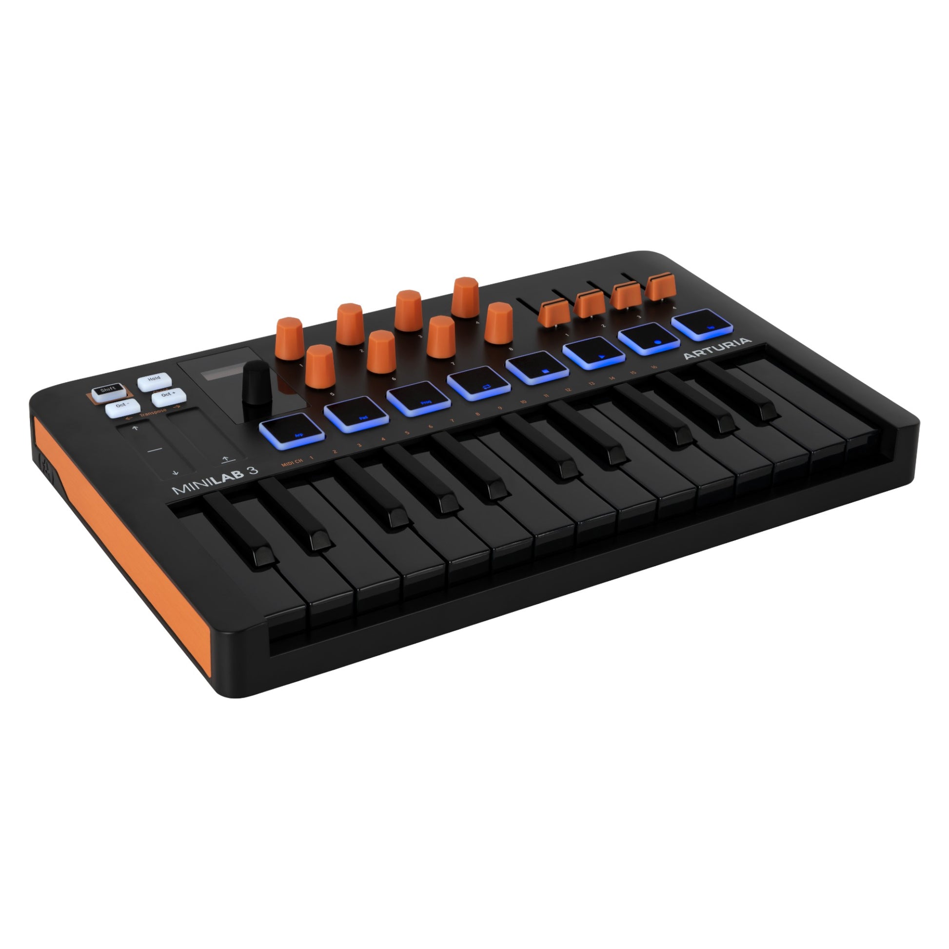 Arturia MiniLab 3 - Universal MIDI Controller for Music Production, with All-in-One Software Package - 25 Keys, 8 Multi-Color Pads - Orange Edition