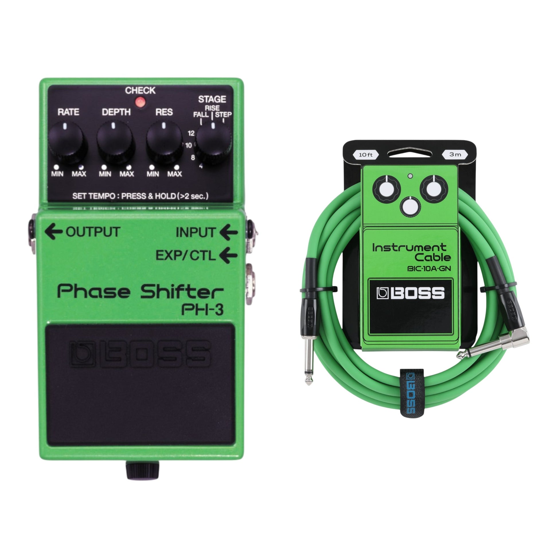 Includes BOSS BIC-10A-GN 10ft 3m Instrument Cable Straight Angled Green