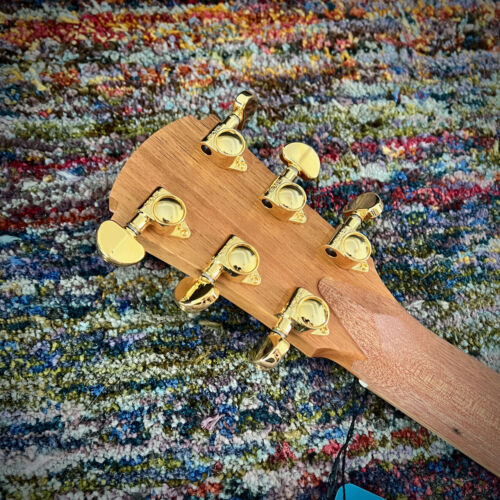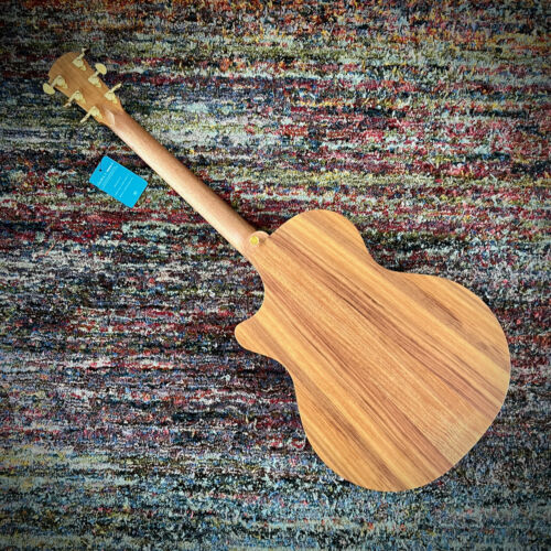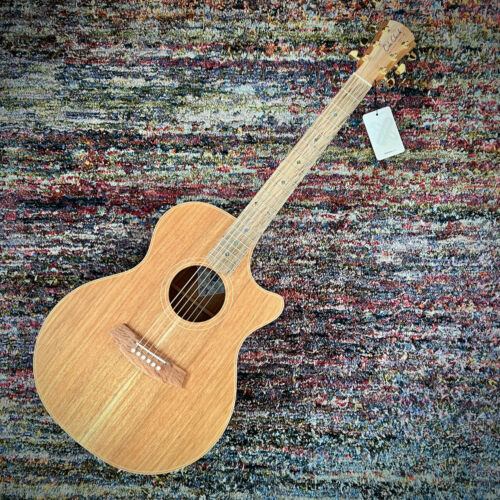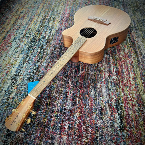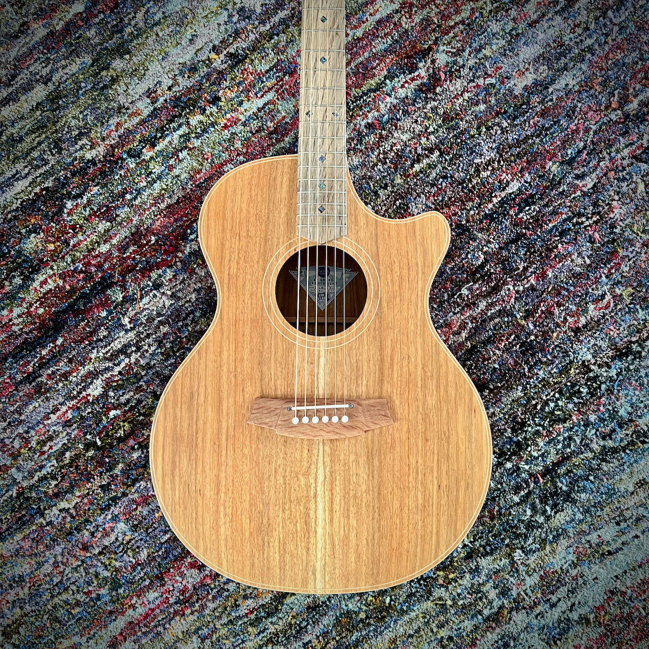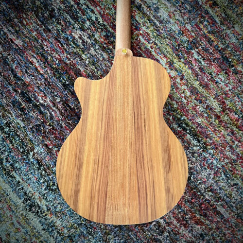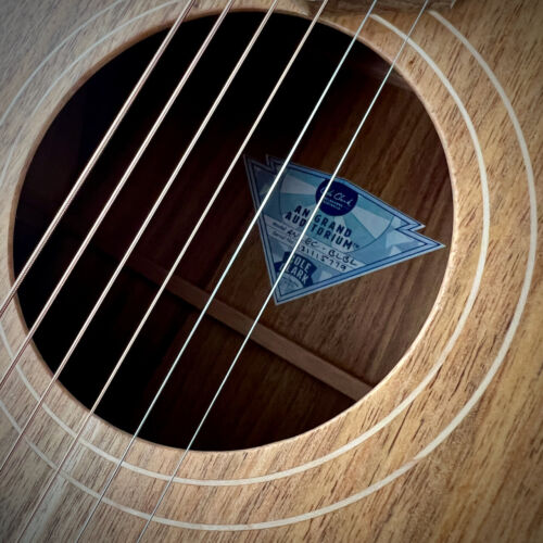 - All solid timber cutaway Grand Auditorium with internally carved top and back