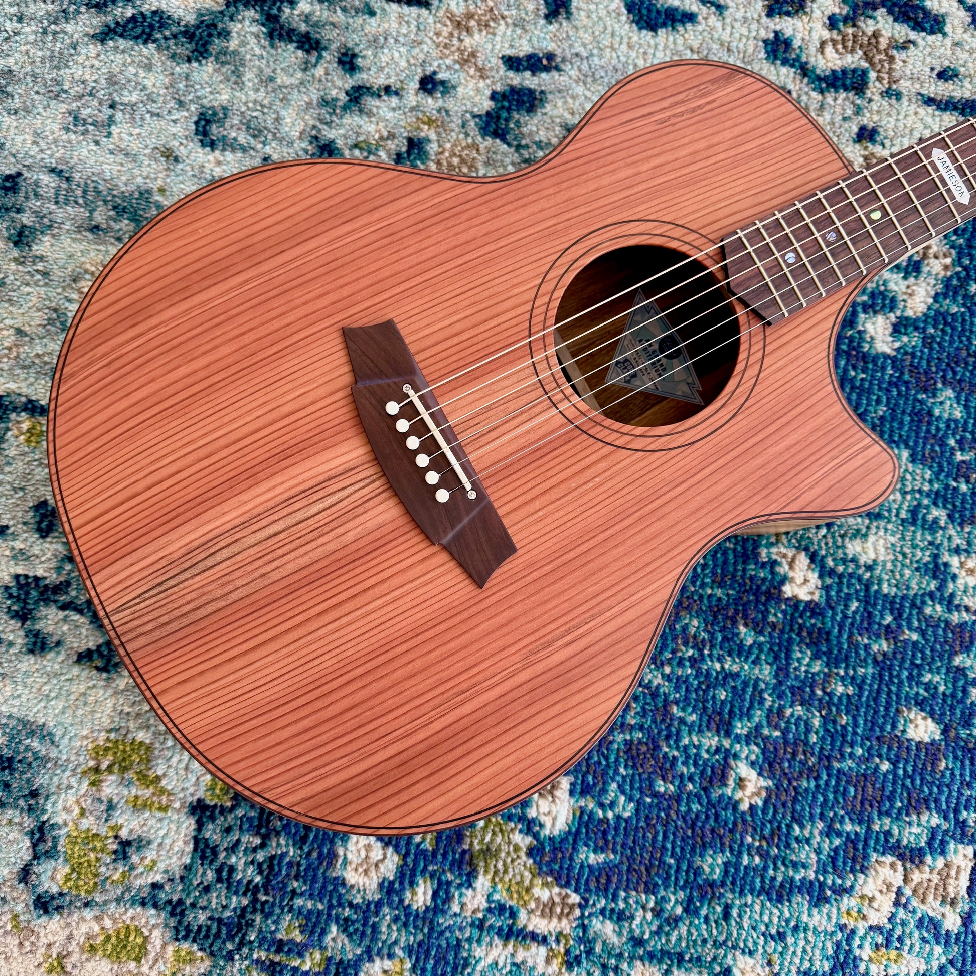- Inlays: Abalone Dot with ‘Jamieson’ at 12th fret
