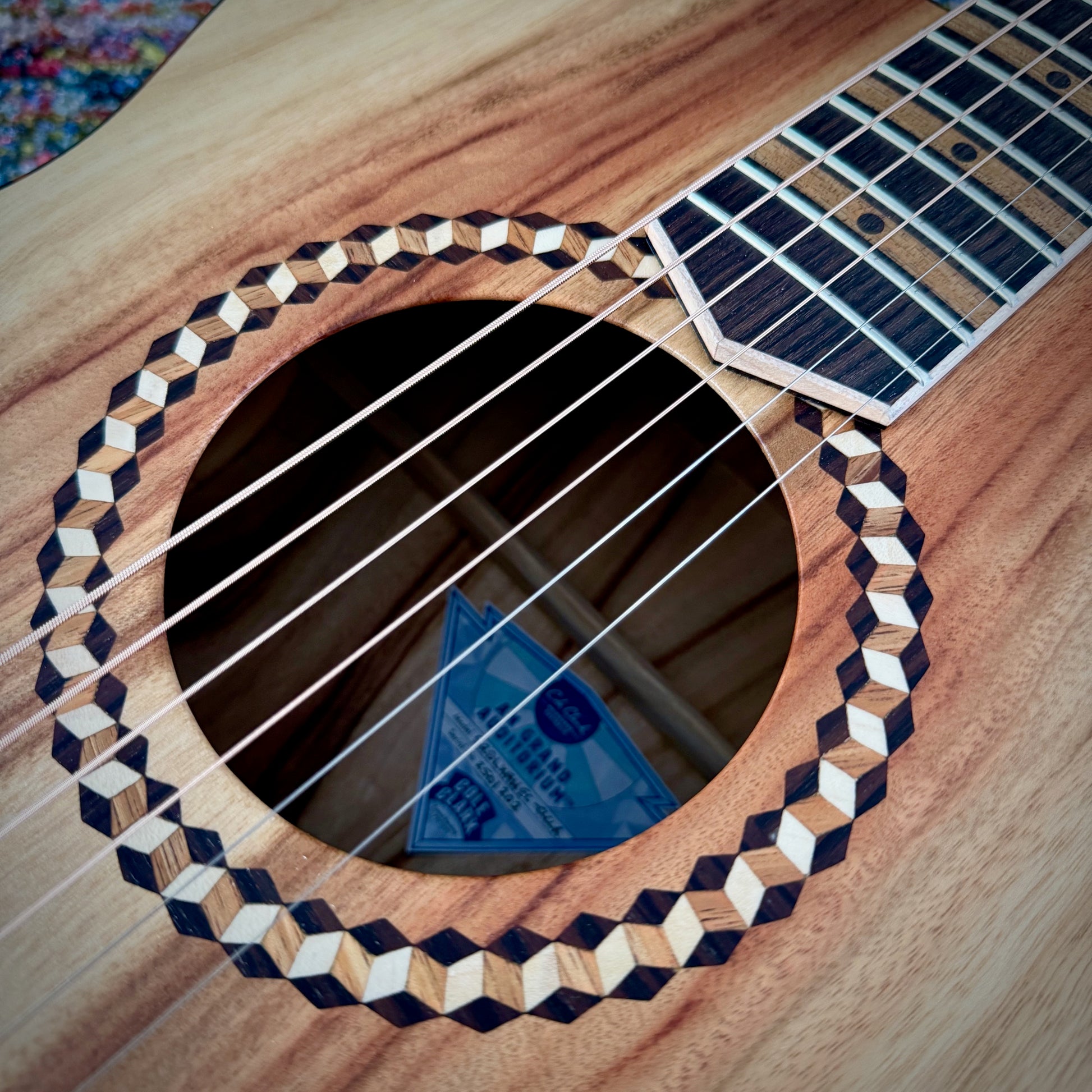 - All solid timber cutaway Deluxe Studio Recording Grand Auditorium with internally carved top and back