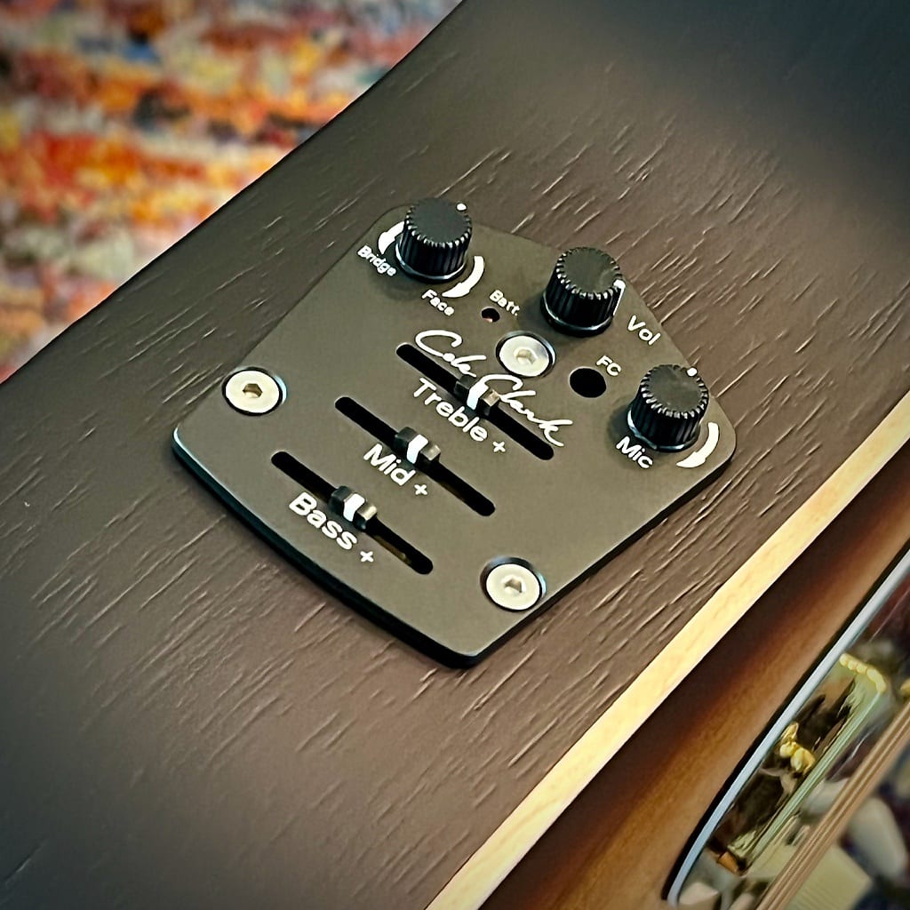 - Two Humbucker – Cole Clark balanced magnetic pickups (Separate output. Tone, volume (white) and selector switches on face)