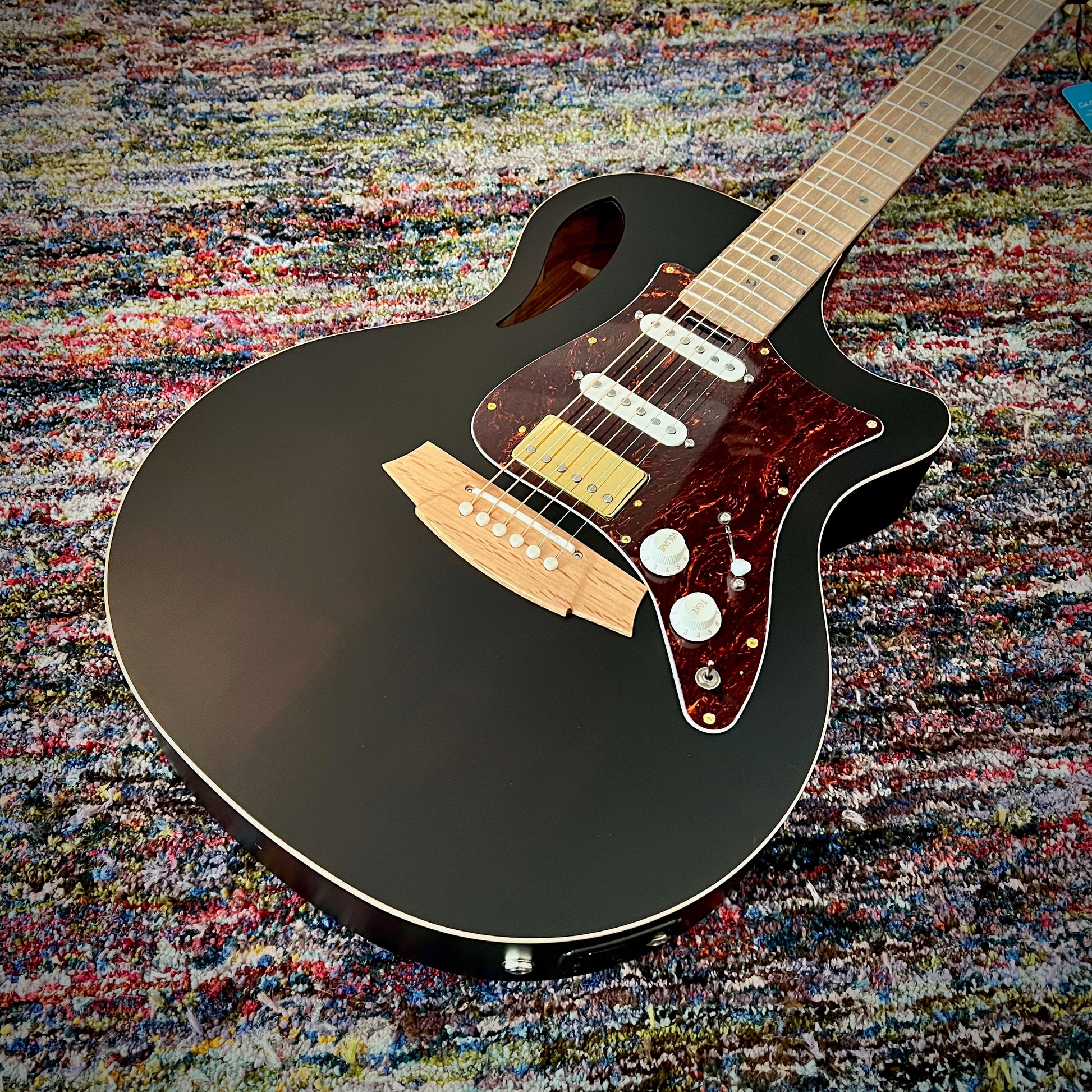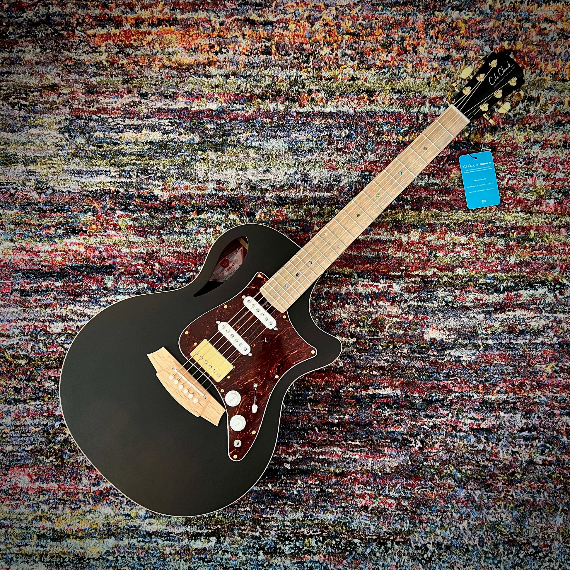 Cole Clark True Hybrid Thinline Acoustic-Electric Guitar, All AA Australian Blackwood, Cutaway, Balanced HSS, Black