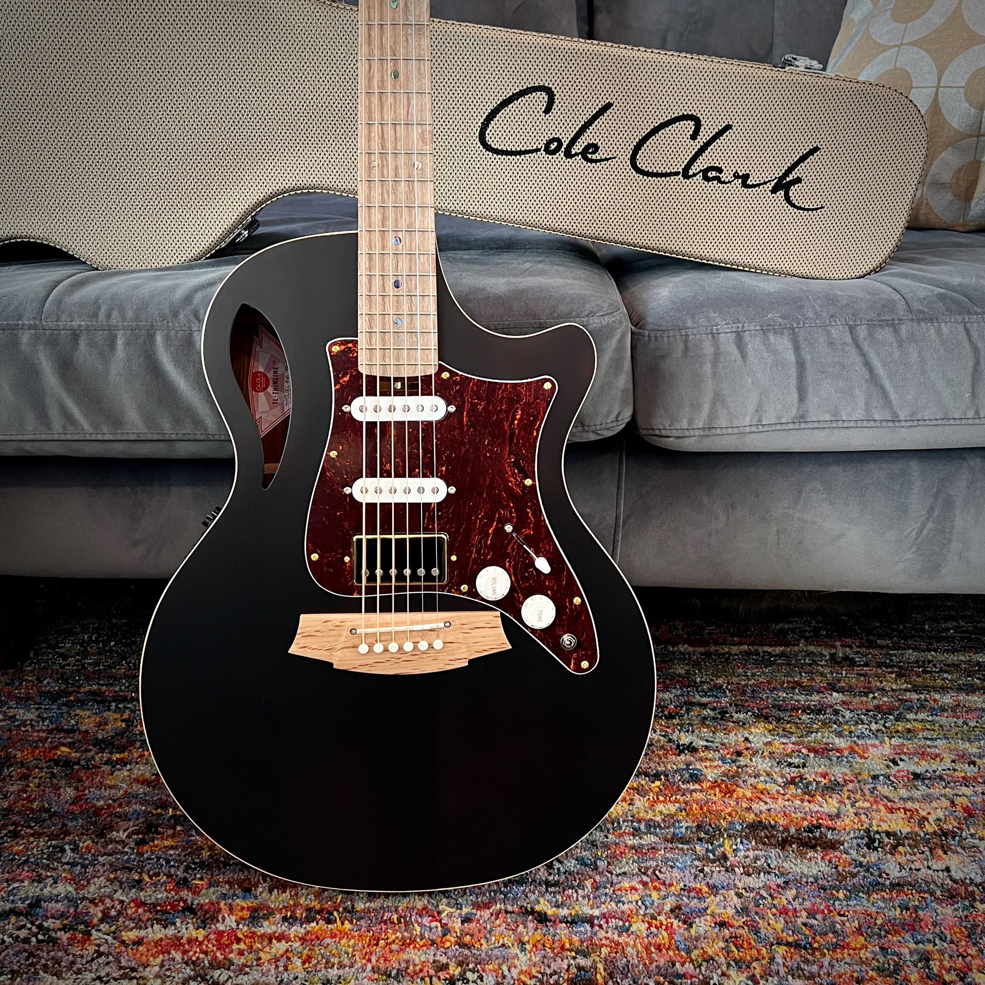 Cole Clark TRUE HYBRID Thinline Acoustic-Electric Guitar, All AA Australian Blackwood, Cutaway, Balanced HSS, Black