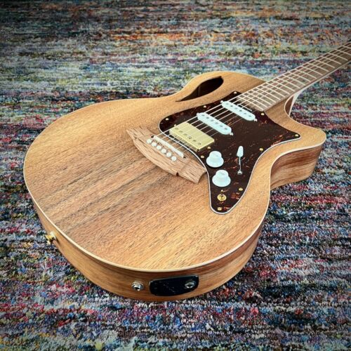 - All solid timber cutaway True Hybrid Thinline Grand Auditorium with F.E.A internal bracing.