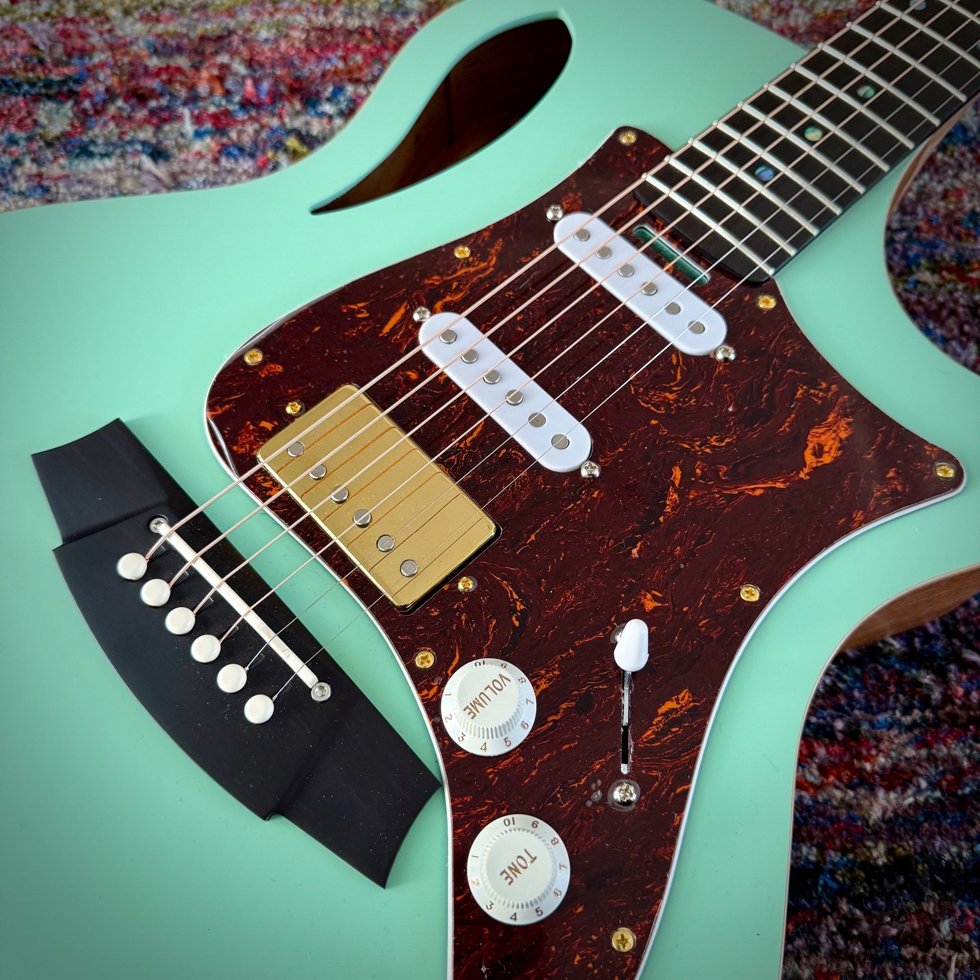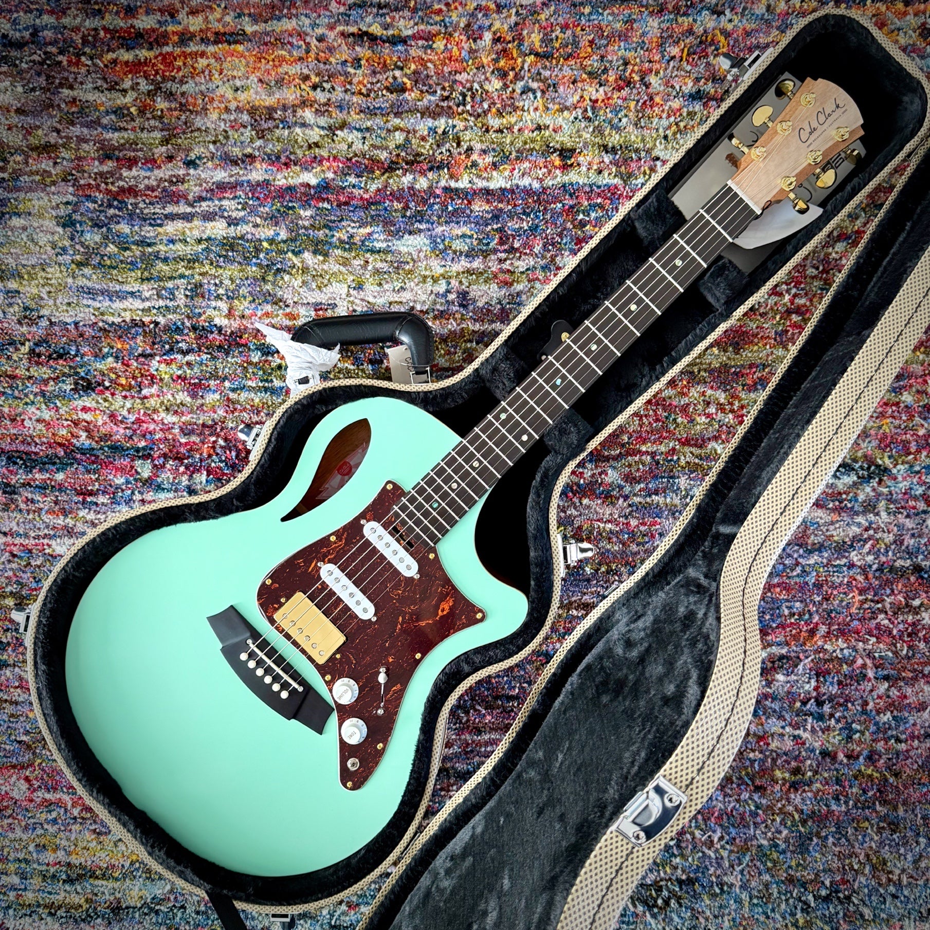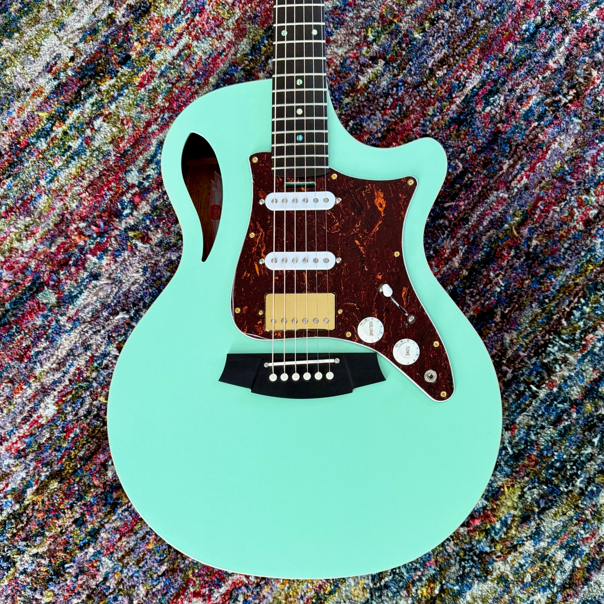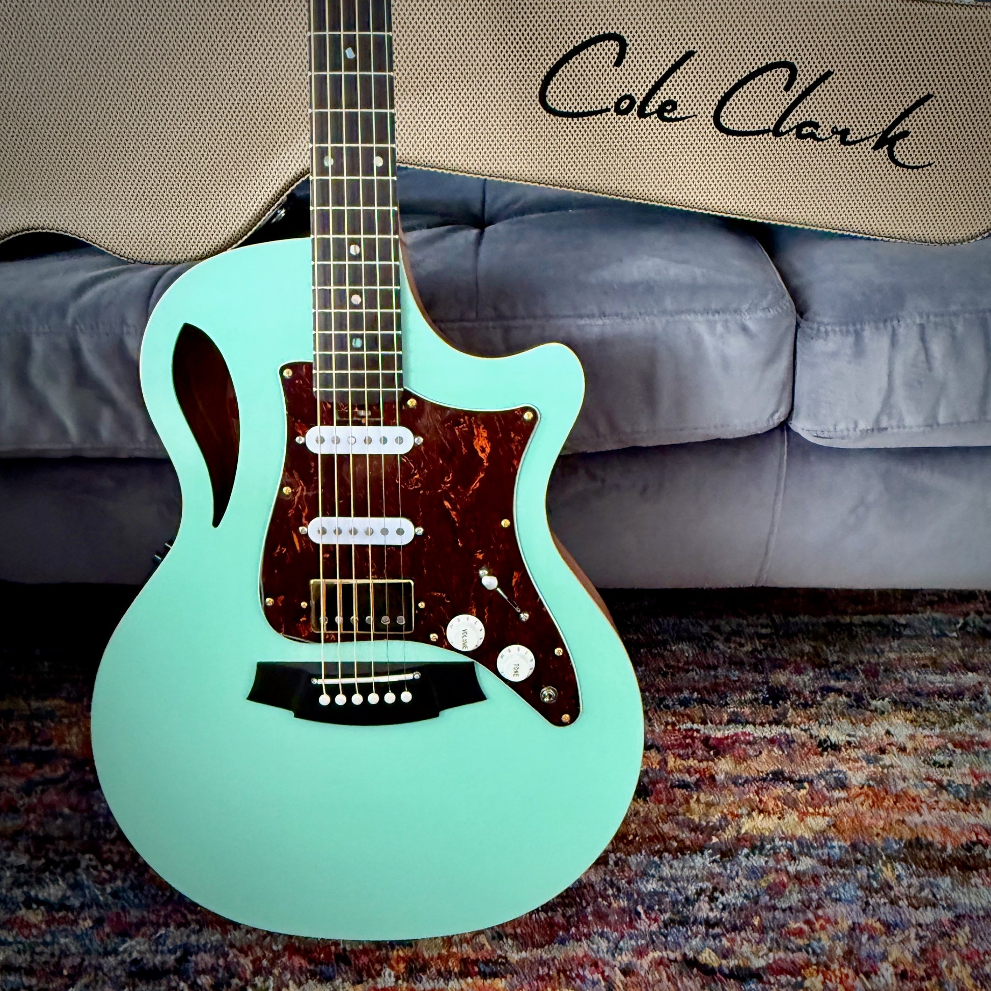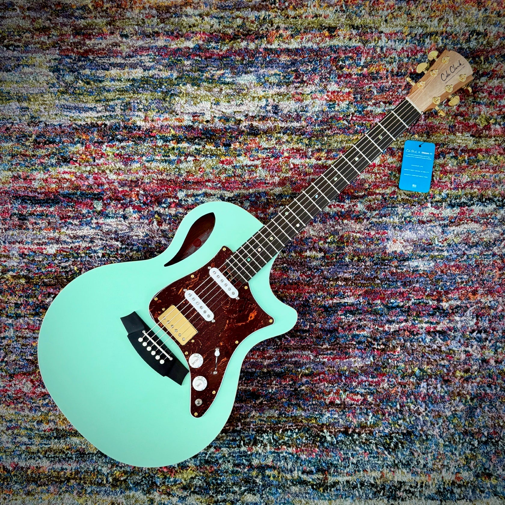 Cole Clark True Hybrid Thinline Acoustic/Electric Guitar, HSS, Blackwood/Ebony, Surf Green (CCTL2EC-BLBLE-HSS-GRN)