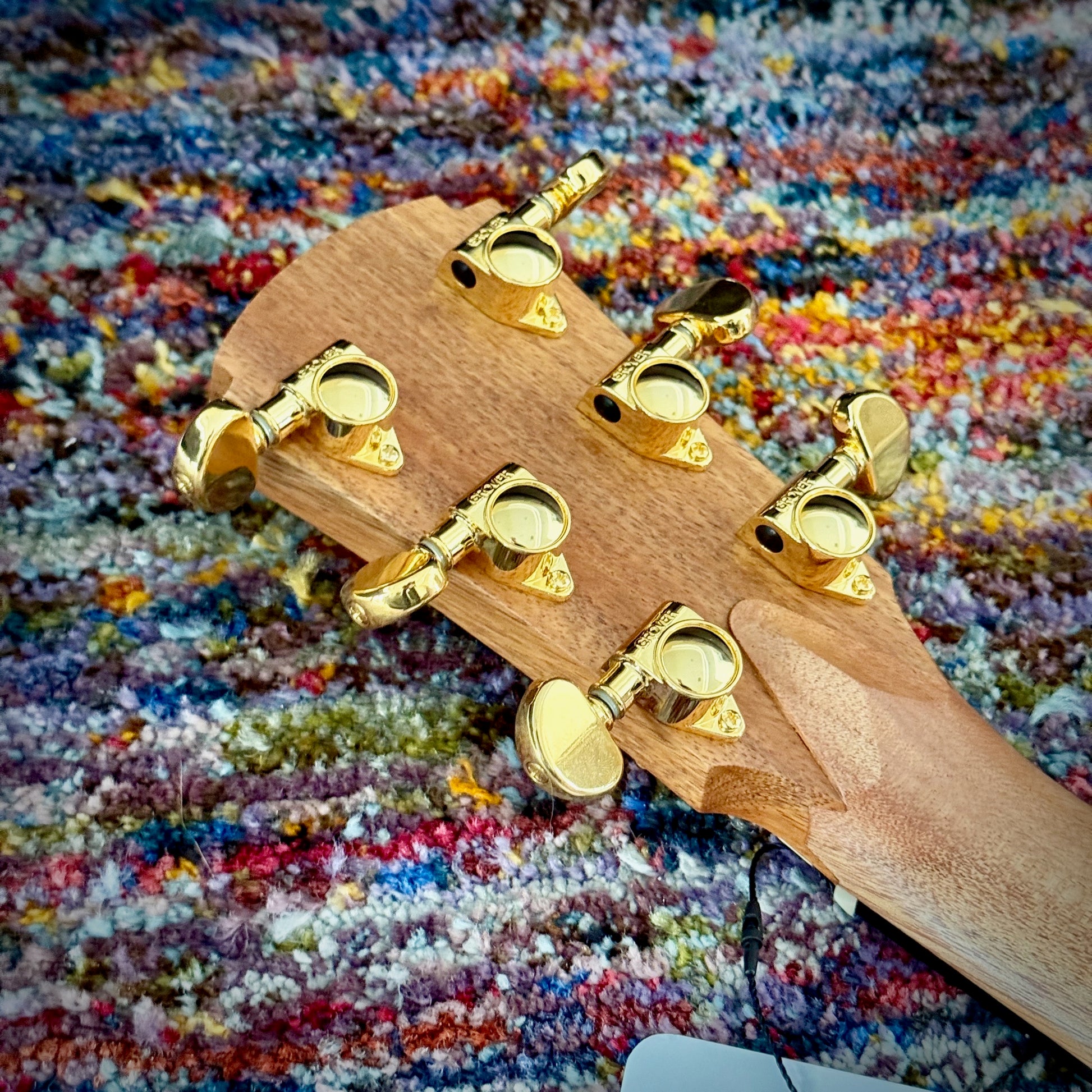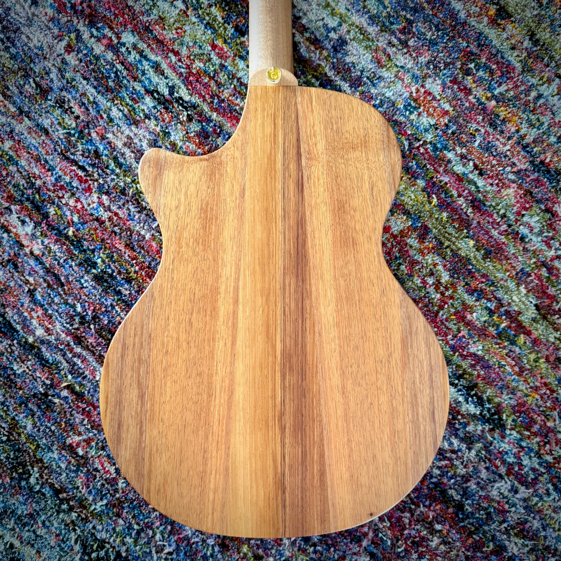 - All solid timber cutaway True Hybrid Thinline Grand Auditorium with F.E.A internal bracing.