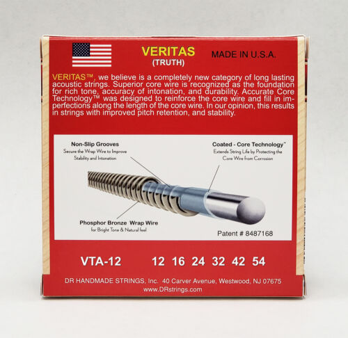 DR Strings 3-Pack VERITAS Coated Core Acoustic Guitar Strings, Light 12-54