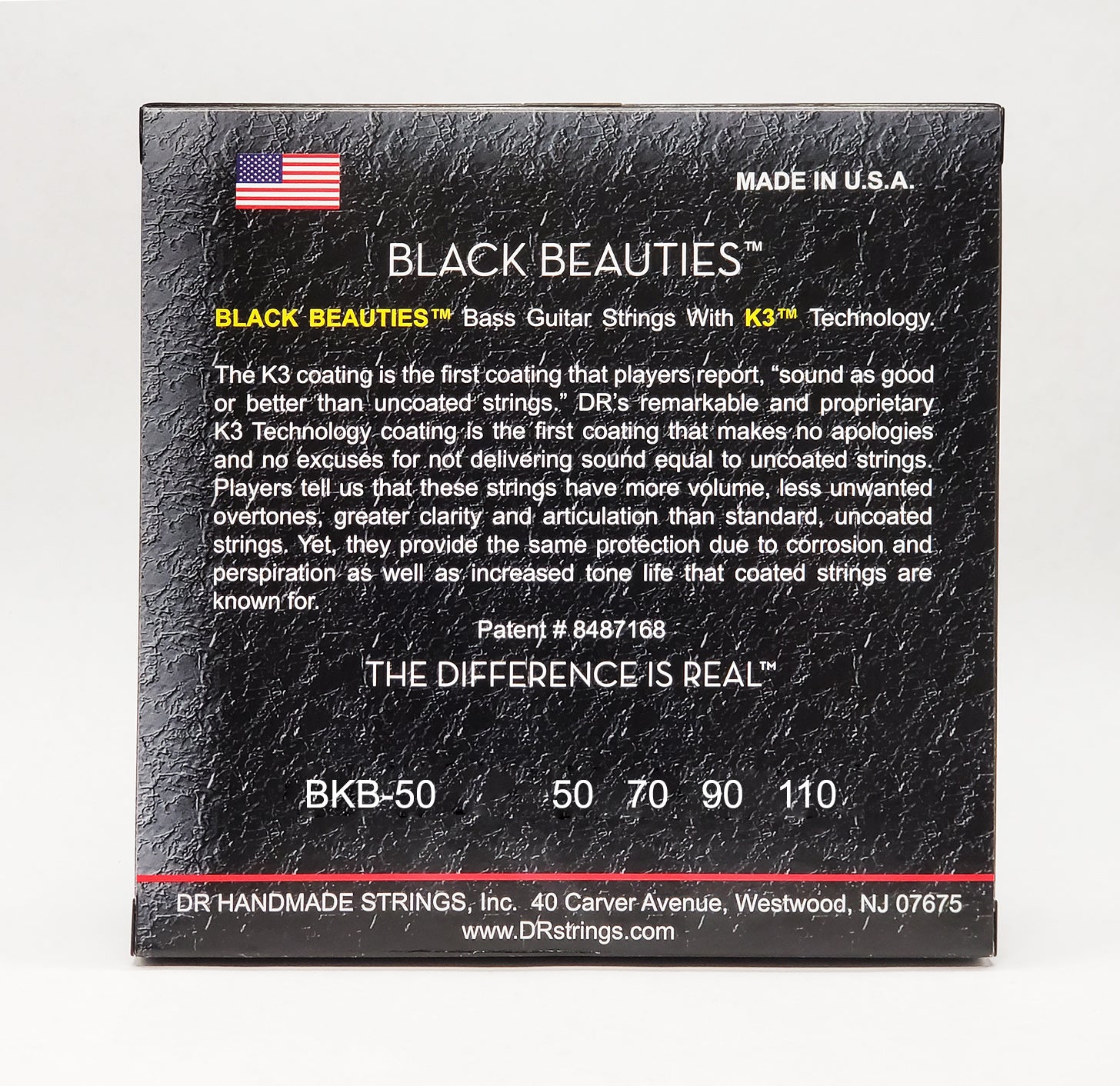 DR Strings BKB-50 Black Beauties K3 Coated Bass Strings 4-String Set Heavy, 50-110