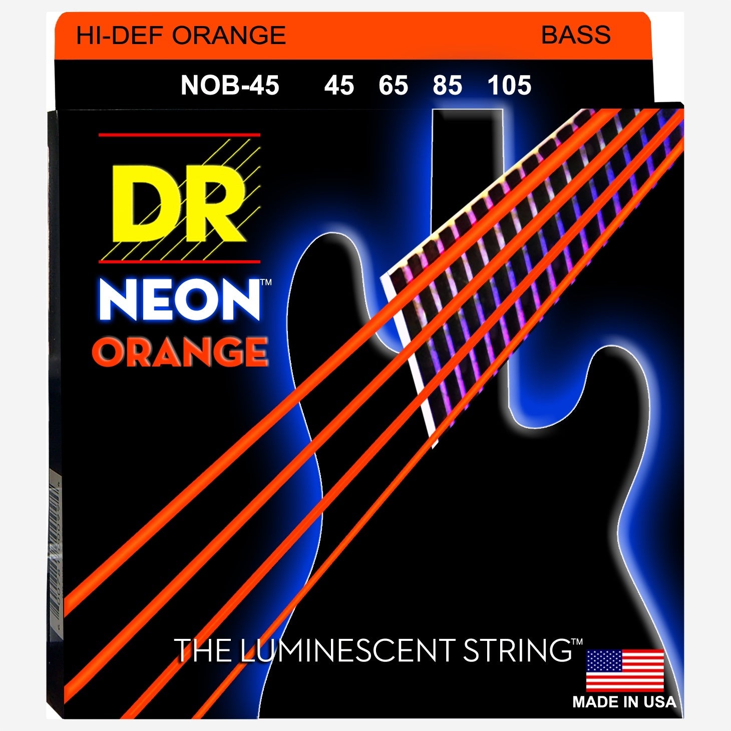 DR Strings Hi-Def Neon Orange Neon Bass Strings, 4-String Set (NOB-45)