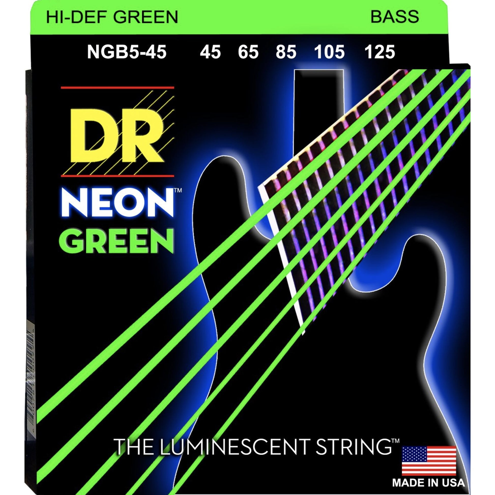 DR Strings NGB5-45 Neon Hi-Def Green Bass Strings, 45-125 Medium 5-String Set