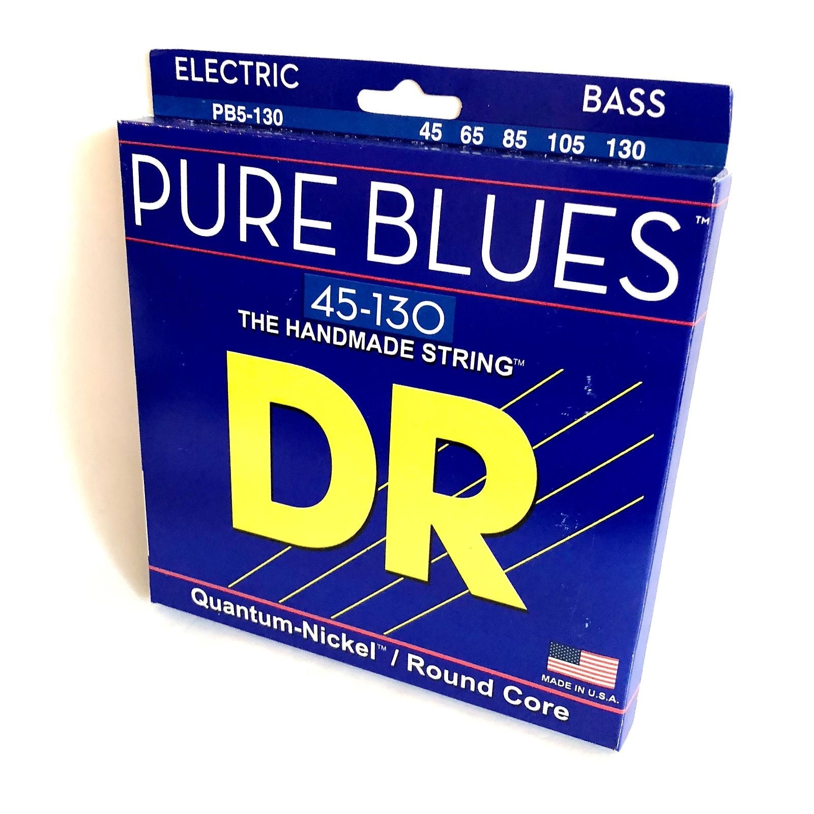 DR Strings PB5-130 Pure Blues Bass 5-String Set (45 65 85 105 130), Quantum-Nickel Round Core