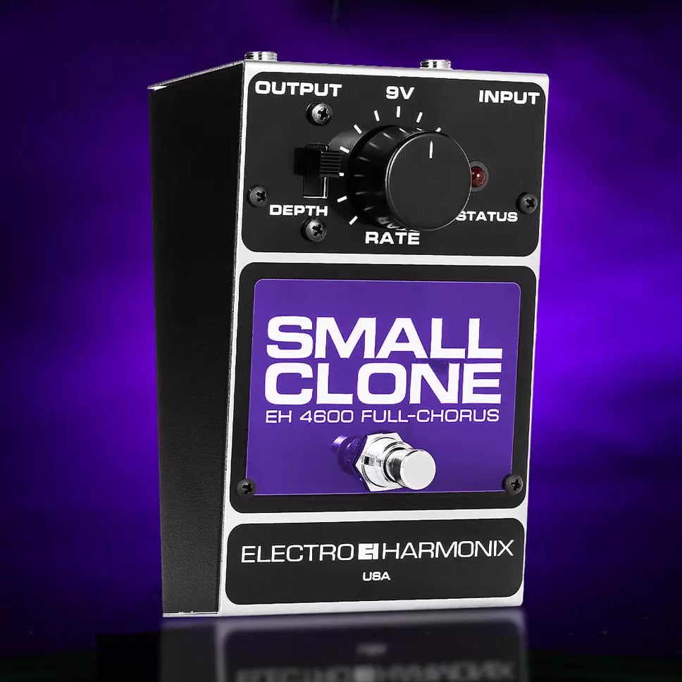The EHX Small Clone Chorus is a reissue of the classic analog chorus pedal popularized by Kurt Cobain. Depth and Rate controls create the finest sounds, from clear, rich and dimensional to warm pulsating warbles.