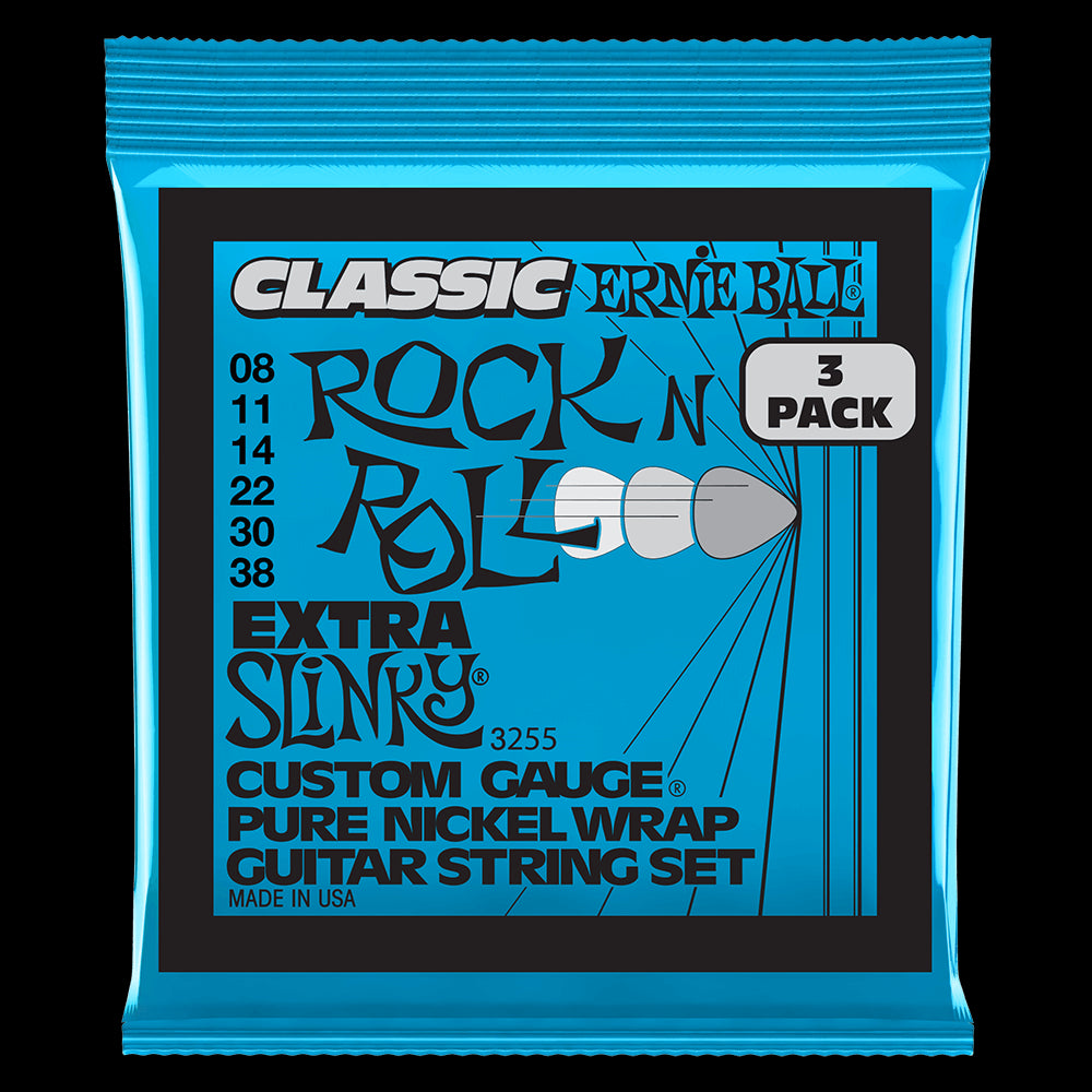 Ernie Ball 3255 Extra Slinky Classic Rock n Roll Pure Nickel Wrap Electric Guitar Strings 8-38 Gauge - 3 Pack