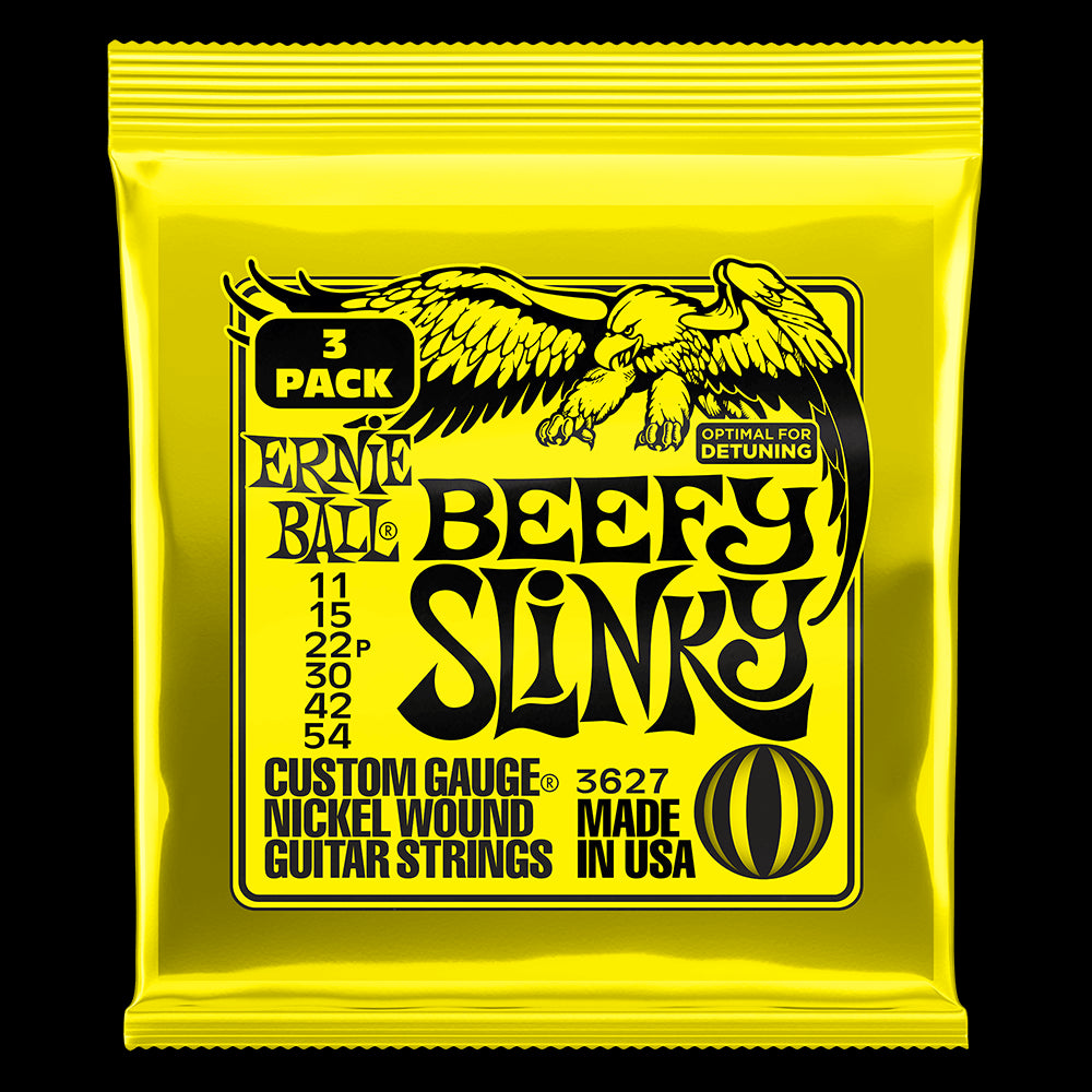 Ernie Ball 3627 Beefy Slinky Nickel Wound Electric Guitar Strings 11-54 Gauge - 3 Pack