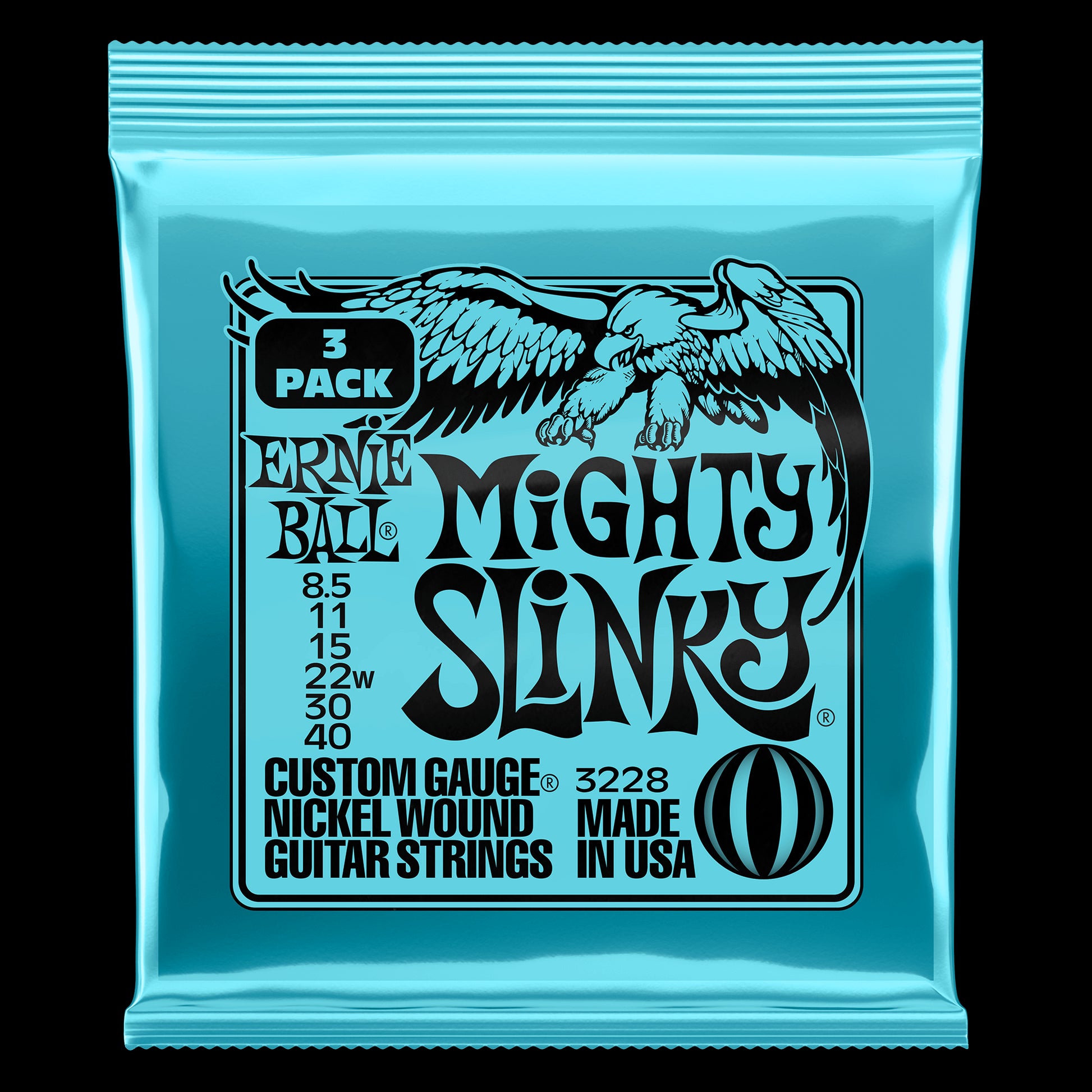Ernie Ball Mighty Slinky Nickel Wound Electric Guitar Strings 3 Pack - 8.5-40 Gauge (3228)