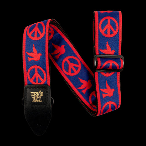 Ernie Ball Red and Blue Peace Love Dove Jacquard Strap