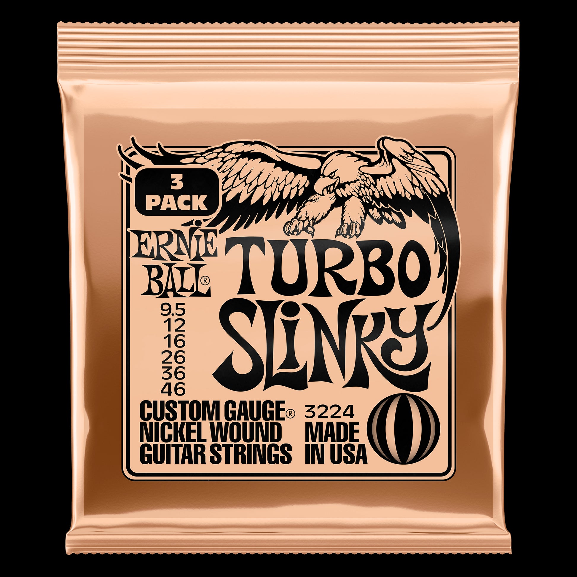 Ernie Ball Turbo Slinky Nickel Wound Electric Guitar Strings 3 Pack - 9.5-46 Gauge