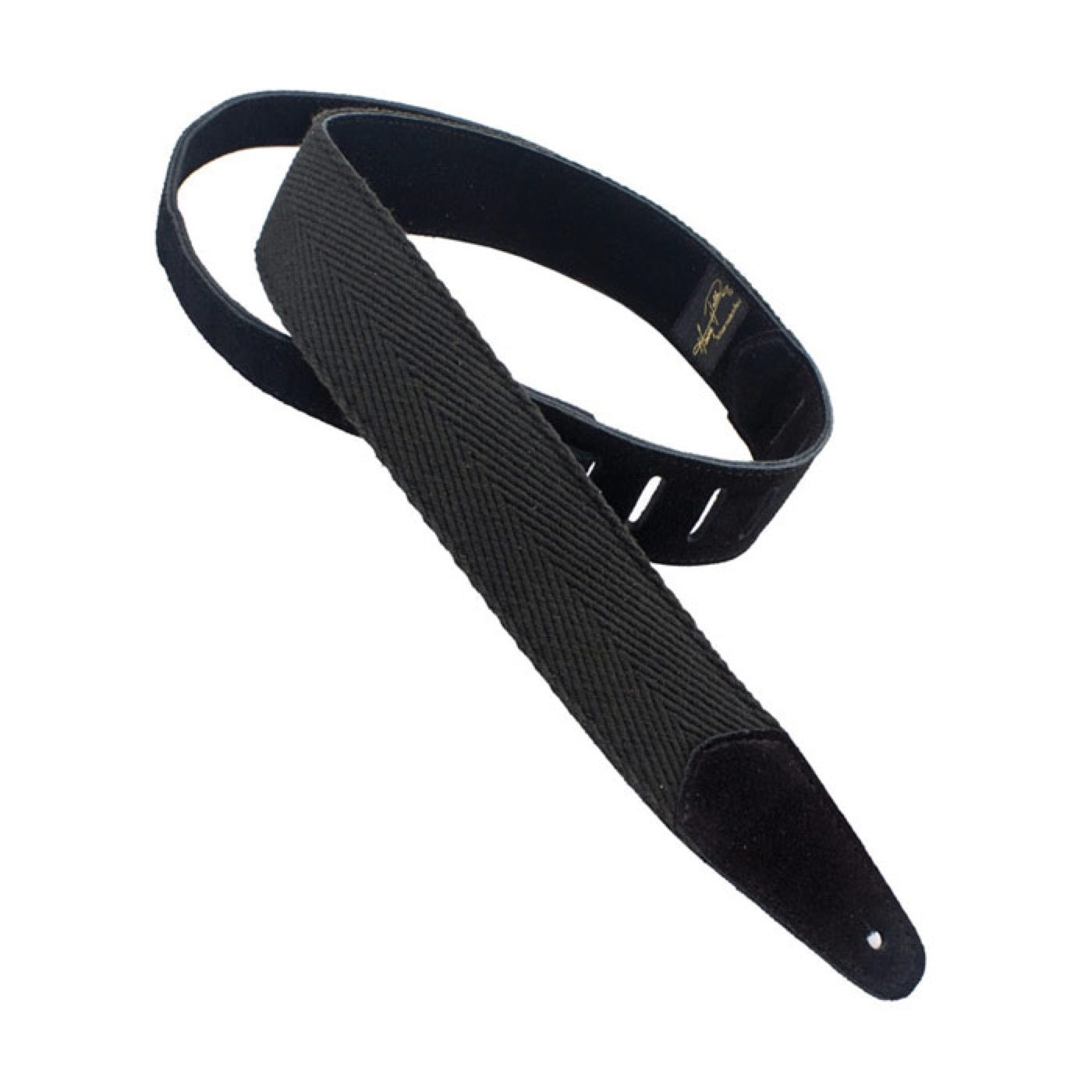 Henry Heller 2" PURE 100% Cotton Guitar Strap with Herringbone Pattern, Velvety Suede Backing, Black