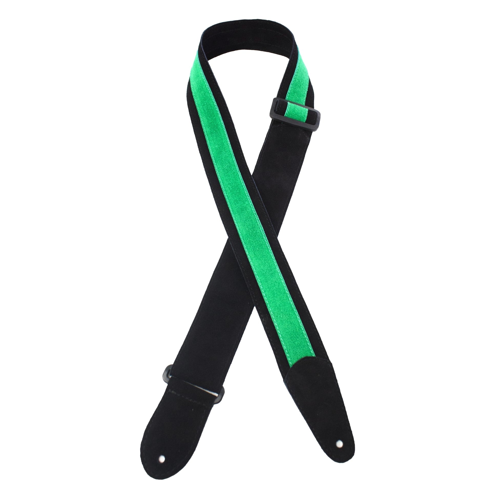 Henry Heller 2" Wide Guitar/Bass Strap, Buttery Black Suede with Centered Green Suede Stripe (HPDS2-04)