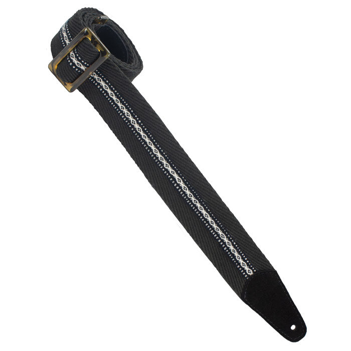 Henry Heller The Original Tort-o TriGlide Strap Herringbone Stitched Cotton, Black with White Deco Wool Strip (HPWS-01)