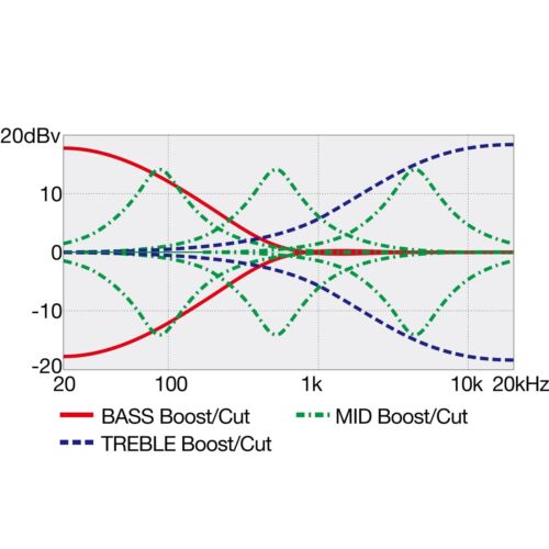 The Vari-mid 3-band EQ features a variable mid-frequency control which allows you to dial in an incredibly wide range of sounds.